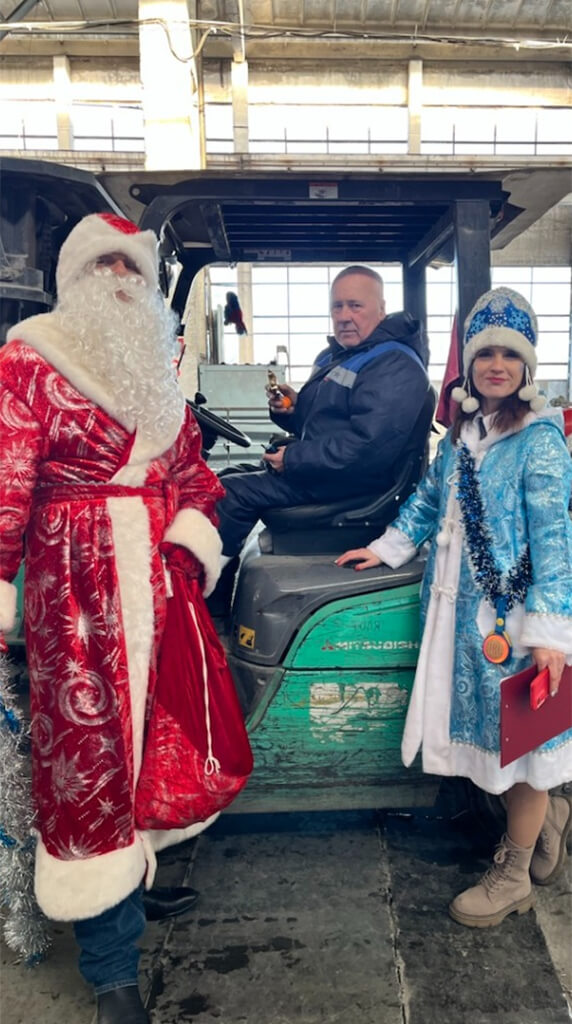 Под задорные новогодние мелодии волшебные гости прошли по цехам, лично поздравив каждого работника с наступающим праздником. Вместо привычного шума оборудования, в воздухе звучали теплые пожелания здоровья, счастья и процветания в новом году, смех и радостные возгласы удивления.